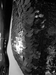 Ich liebe spiegelnde Sachen und optische Effekte. Auch sammle ich alte Materialien, die man in Kostüme integrieren kann. Früher konnte man den Dingen Zeit widmen. Das ist auch in meinem Sinn. Bei den Kleidern sind mir das Tragegefühl und die Qualität sehr wichtig. Dort bevorzuge ich natürliche Materialien. Trotzdem bleibe ich gerne offen, letztlich bestimmen die Eigenschaften des Materials meine Wahl.