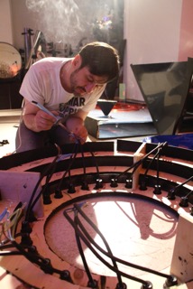 Mit Comini ist das Licht in mein Leben gekommen. Gemeinsam haben wir das Label U+I gegründet, für das wir Design-Objekte entwickeln. Angefangen hat das Ganze mit Spielereien im Atelier. Dann öfters gemeinsam Partys dekoriert. Auch der Quallenwald, welcher wir für den Captain’s Rave realisierten, ist ein gemeinsames Projekt. Nachdem wir eine Wand und die Eingangstüre im Club Zukunft gestaltet hatten, kam der Auftrag die WCs zu designen. Das hat uns sofort interessiert, weil die Toiletten im Nachtleben eine wichtige Rolle spielen, aber oft vernachlässigt werden. Bei diesem Auftrag entstand unter anderem auch der Spiegel, der uns dazu bewegte, ein eigenes Label zu gründen.