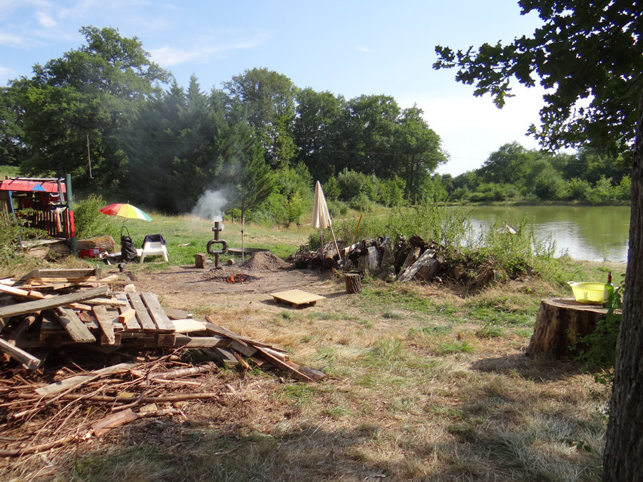 Der Abenteuerplatz am See unter den altehrwürdigen Eichen war sehr inspirierend und auch tagsüber angenehm schattig. Der Ort wurde rasch zu meinem Fou-Freiluftatelier. Ich hatte 10kg Ton mit nach Fougerette gebracht, um endlich wieder mal experimentieren zu können.