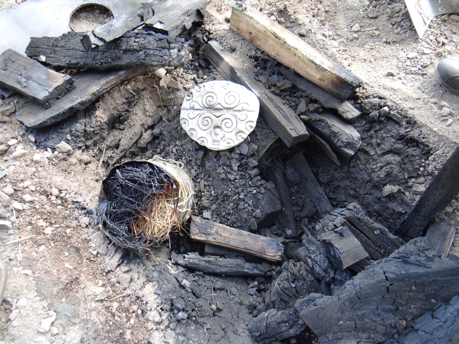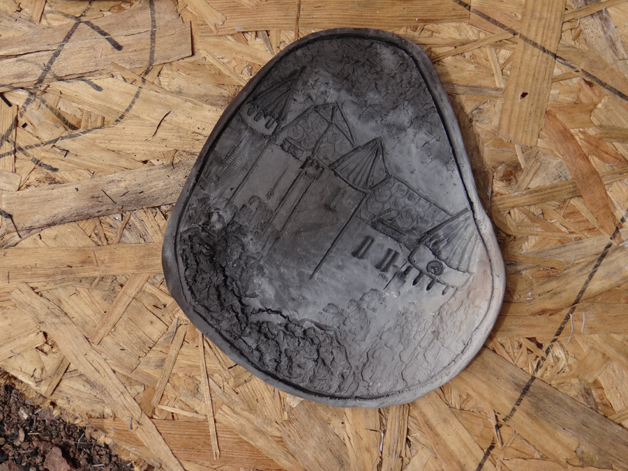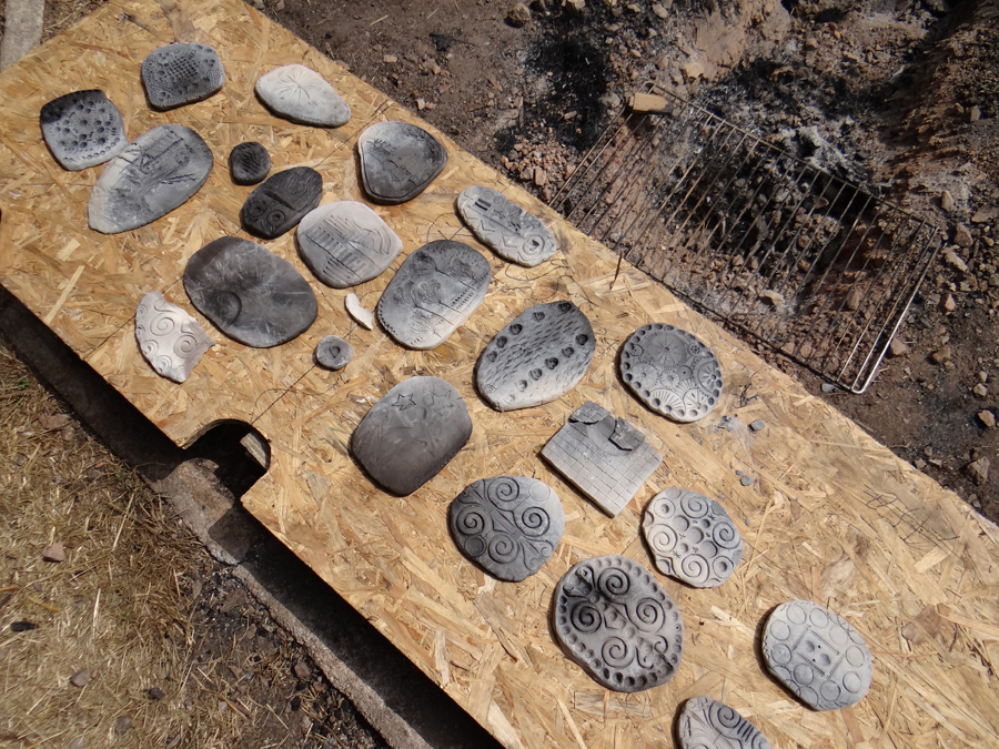 Engländer können eine unglaubliche Begeisterung entfalten, im Dreck zu graben. Chris war es denn auch, der sich intensiv um den Ofenbau des „original blood moon fou kiln“ in brütend heisser Hitze kümmerte (in derselben Woche war auch die Mondfinsternis 2018!). Für den Brand der Reliefkacheln sollte es gemäss Internet möglich sein, den Ton in weisser und schwarzer Färbung hinzubekommen. Die Farbe sei durch den gewissen Verbrennungsprozess mit und ohne Sauerstoffzufuhr, zu erreichen… Diese Herausforderung nahmen wir an, und letztlich brauchten wir nur noch die edlen Ton-Platten zu erstellen, wofür wir den Workshop einberiefen.