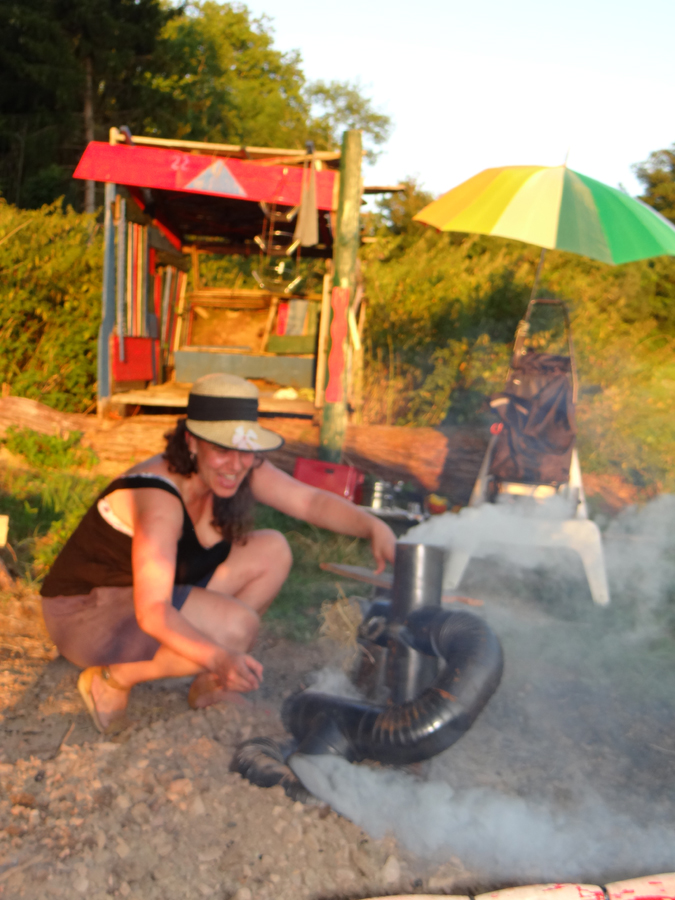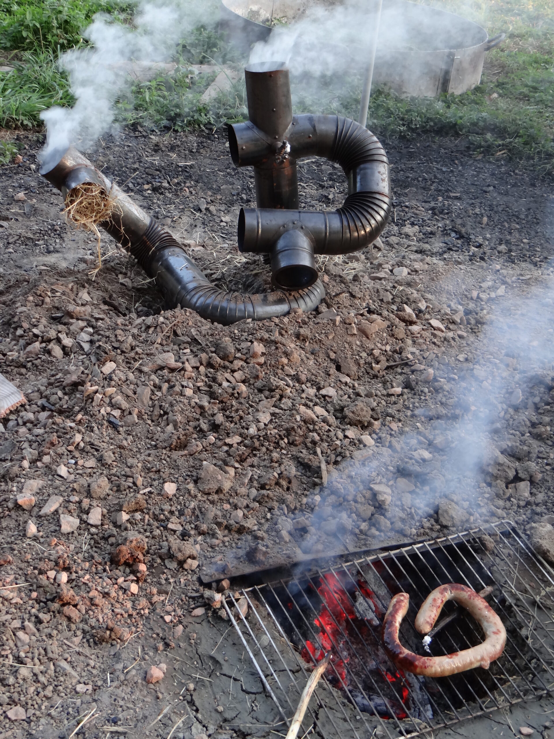 The project “ignited” at the Brocki, that is, when I found Salome in her summer dress with both arms (up to her elbows) inside lengths of sooty black stove pipe; not unlike the Tin Man from the „Wizard of Oz“ but somewhat dirtier. It was really great to see her so “inflamed” with enthusiasm when she found a cache of valuable chimney parts at the local Emmas joint.