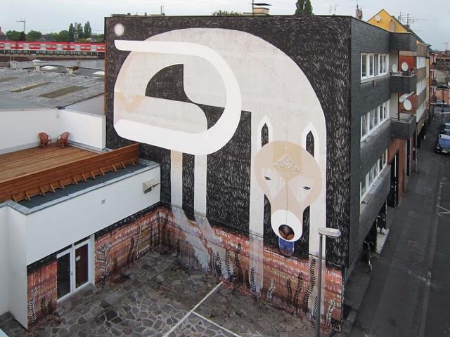 Mich reizt Grösse. Mein bisher grösstes Bild durfte ich in Atlanta G.A. malen: 110m lang und 20m hoch. Ich finde es extrem cool, Hebebühnen mit Lastwagen daran zu fahren und mit 6m langen Stangen vorzuzeichnen. Auch bin ich mir bewusst, dass ein Wandbild ein einschneidender Eingriff in die Umgebung ist und deshalb gebe ich alles, damit dieses für die Anwohner zu einer Bereicherung wird. Natürlich kann man es nie allen recht machen – allerdings bin ich überzeugt, dass Bilder einen wesentlich stärkeren Denkimpuls vermitteln als die oft grauen Fassaden unserer urbanen Räume.